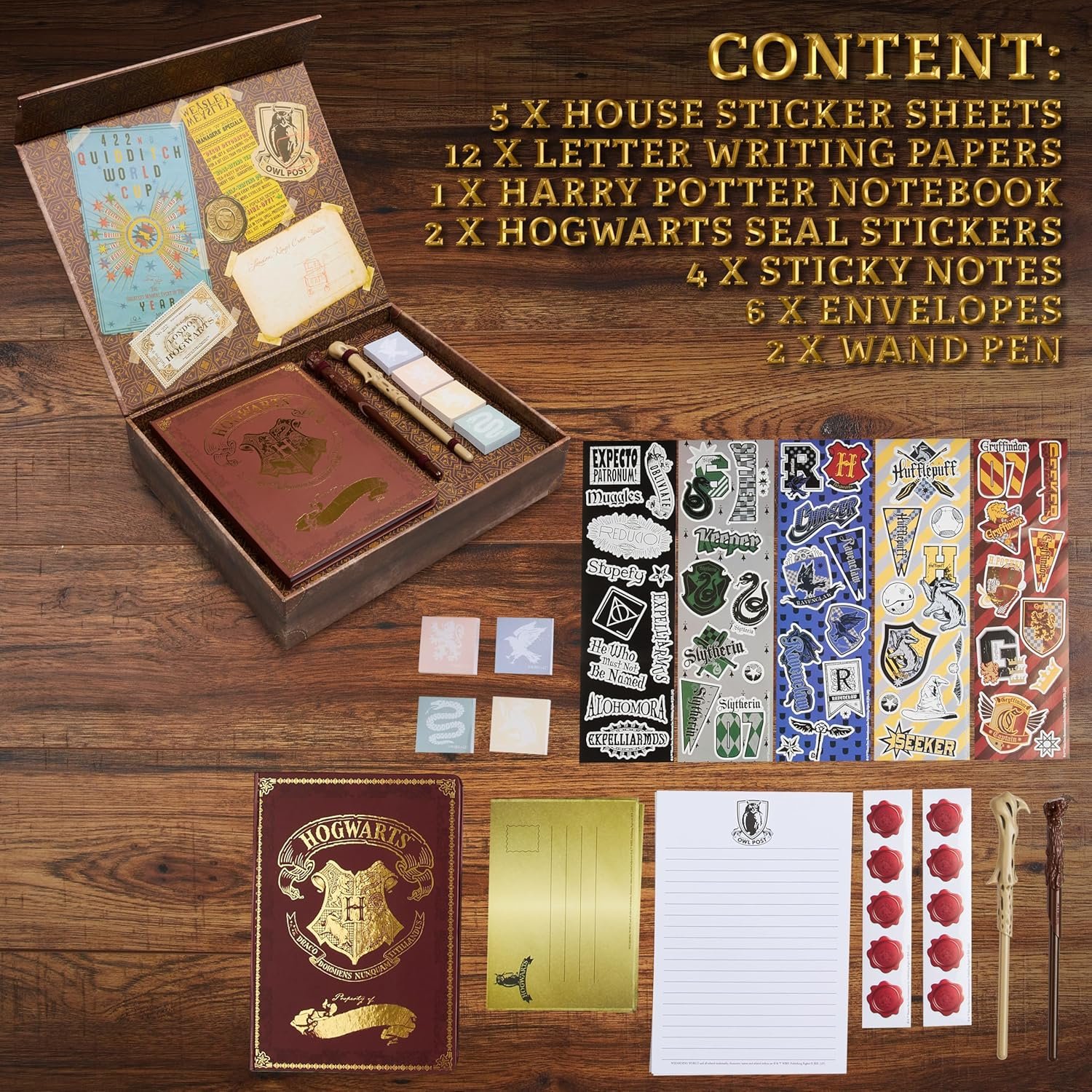 Everything You Need for Writing Fun: Includes A5 notebook, Harry Potter and Voldemort wand pens, seal stickers, letter writing paper, envelopes, sticky notes and sticker sheets.